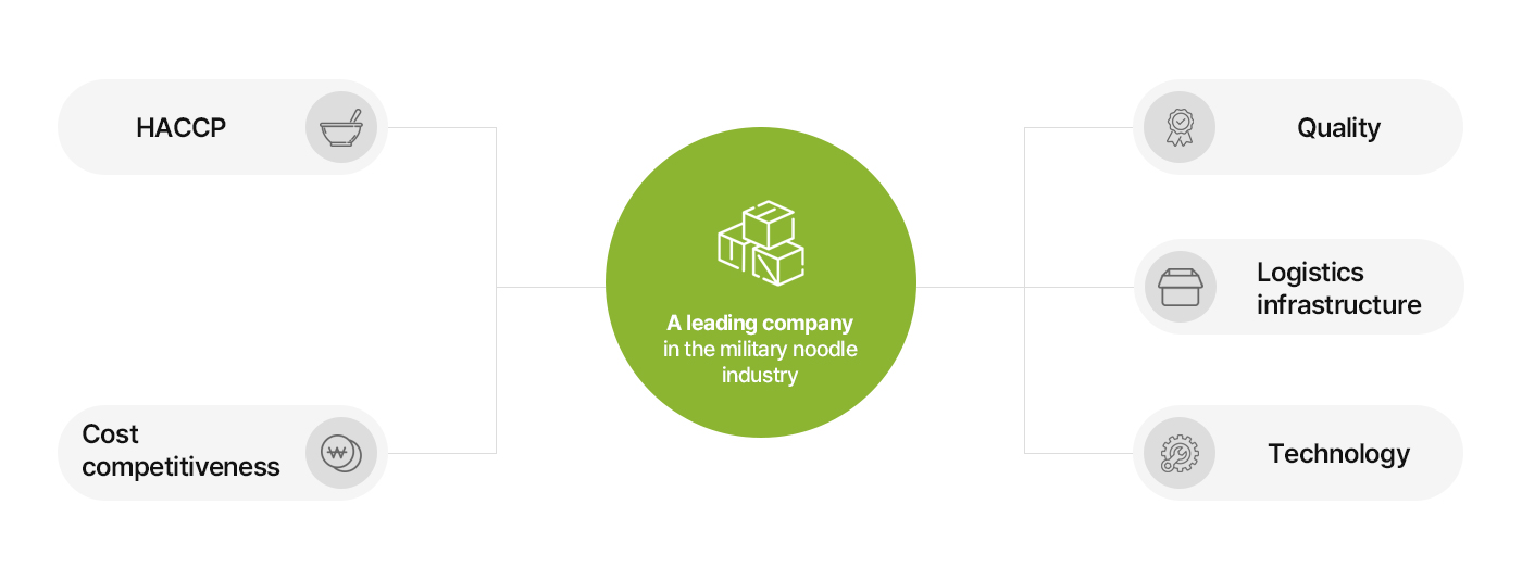 Since 2005, DONGSUNG FOODS has been supplying noodle products to military units across South Korea, contributing to the provision of safe and reliable food nationwide.
